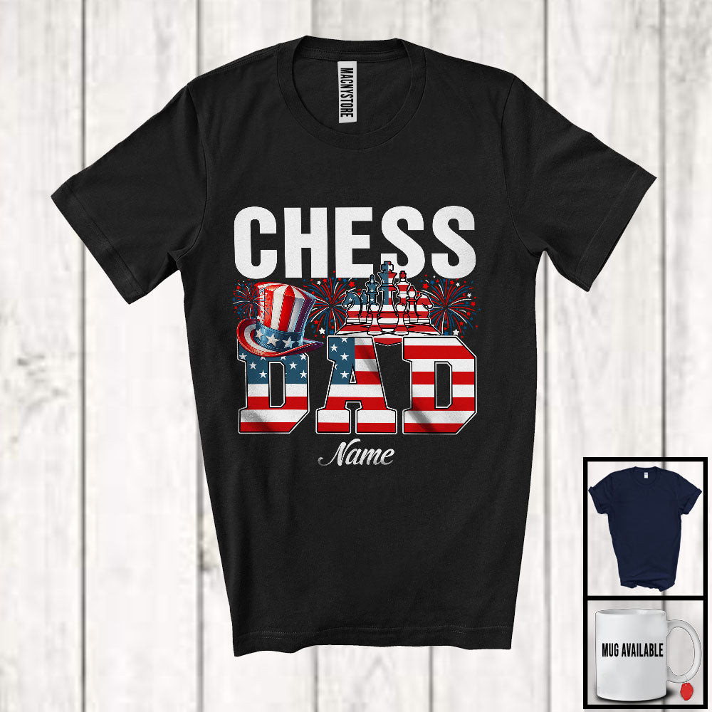 Personalized Custom Name Chess Dad, Proud 4th Of July USA Flag Sport, Patriotic Family T-Shirt