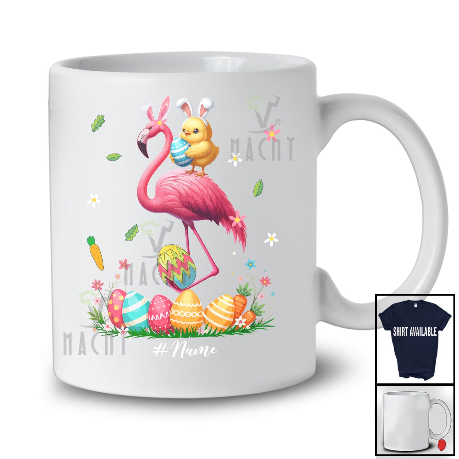 Personalized Custom Name Chick Ridding Flamingo; Amazing Easter Eggs Hunting; Family T-Shirt
