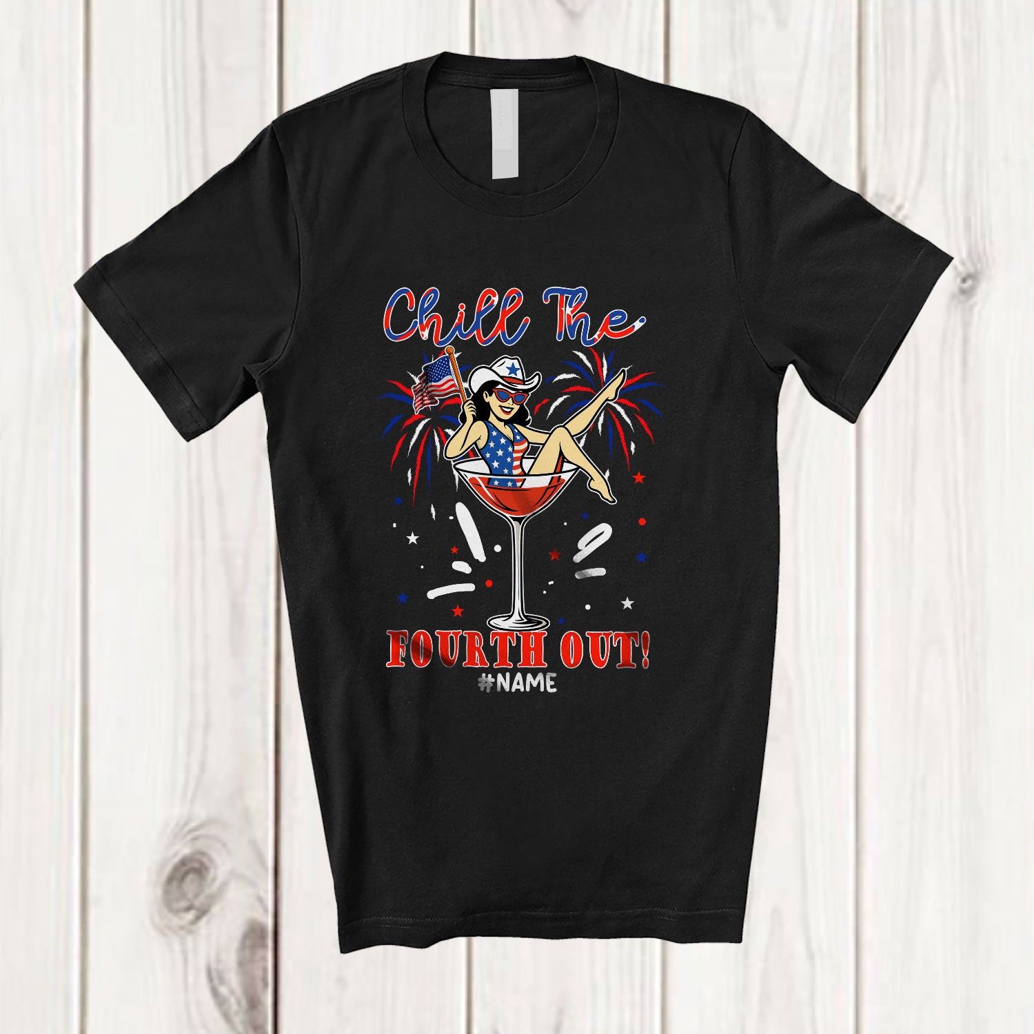 Personalized Custom Name Chill The Fourth Out; Joyful 4th Of July Girl In Wine Glass; Patriotic T-Shirt