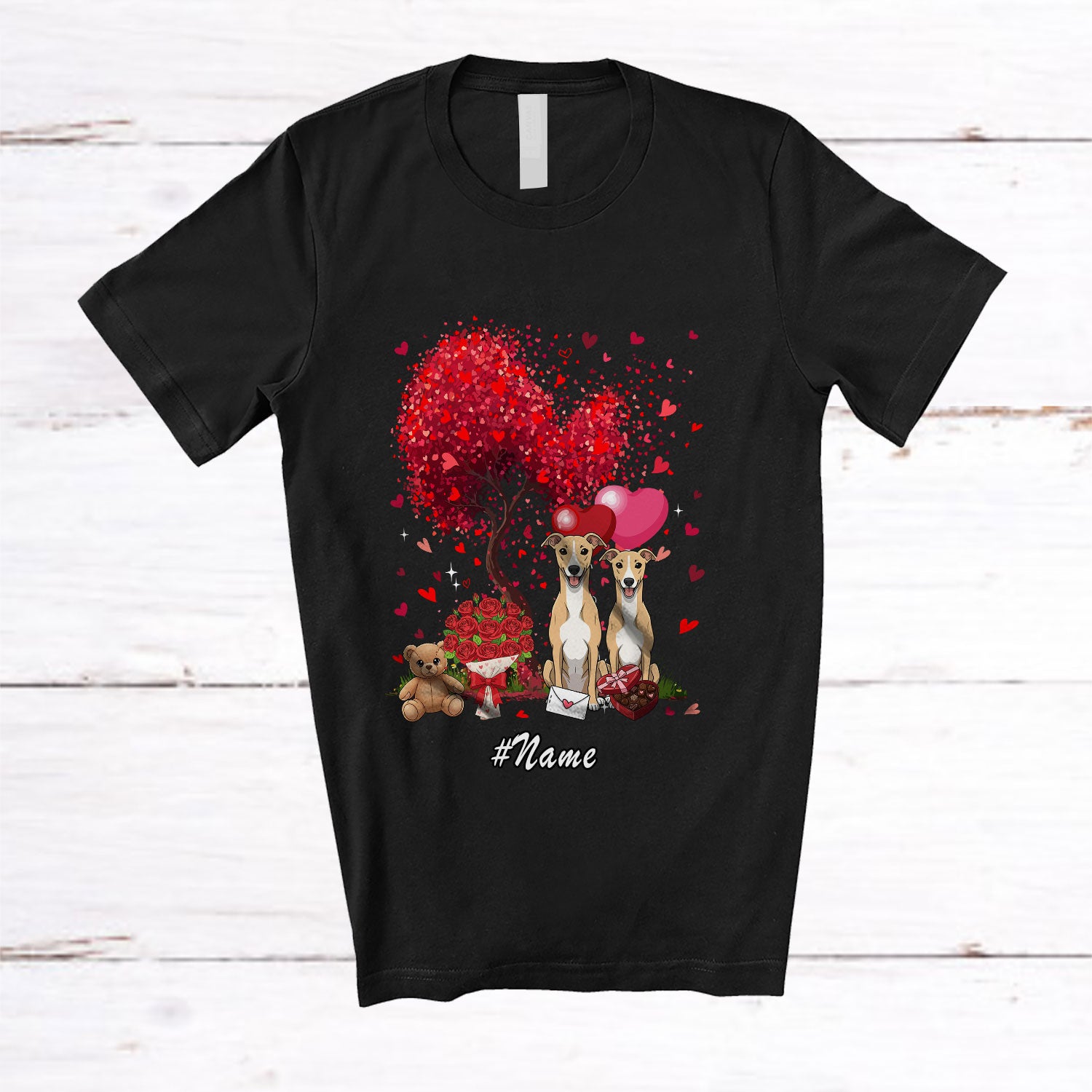 Personalized Custom Name Couple Whippet With Hearts Tree; Lovely Valentine Heart Flowers T-Shirt