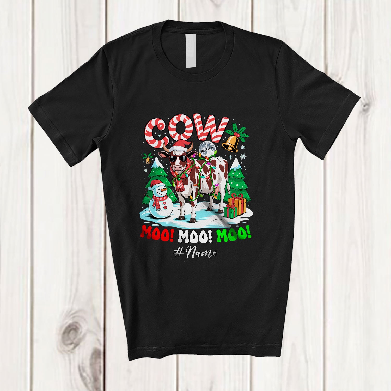 Personalized Custom Name Cow Moo; Amazing Christmas Lights Santa Cow Snowman; Farm Farmer T-Shirt