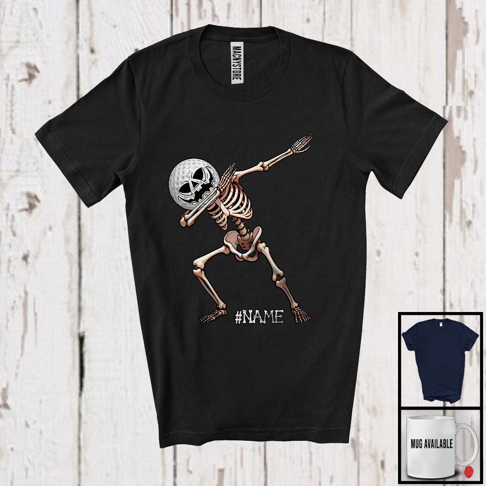 Personalized Custom Name Dabbing Golf Skeleton, Cheerful Halloween Sport Player Team T-Shirt