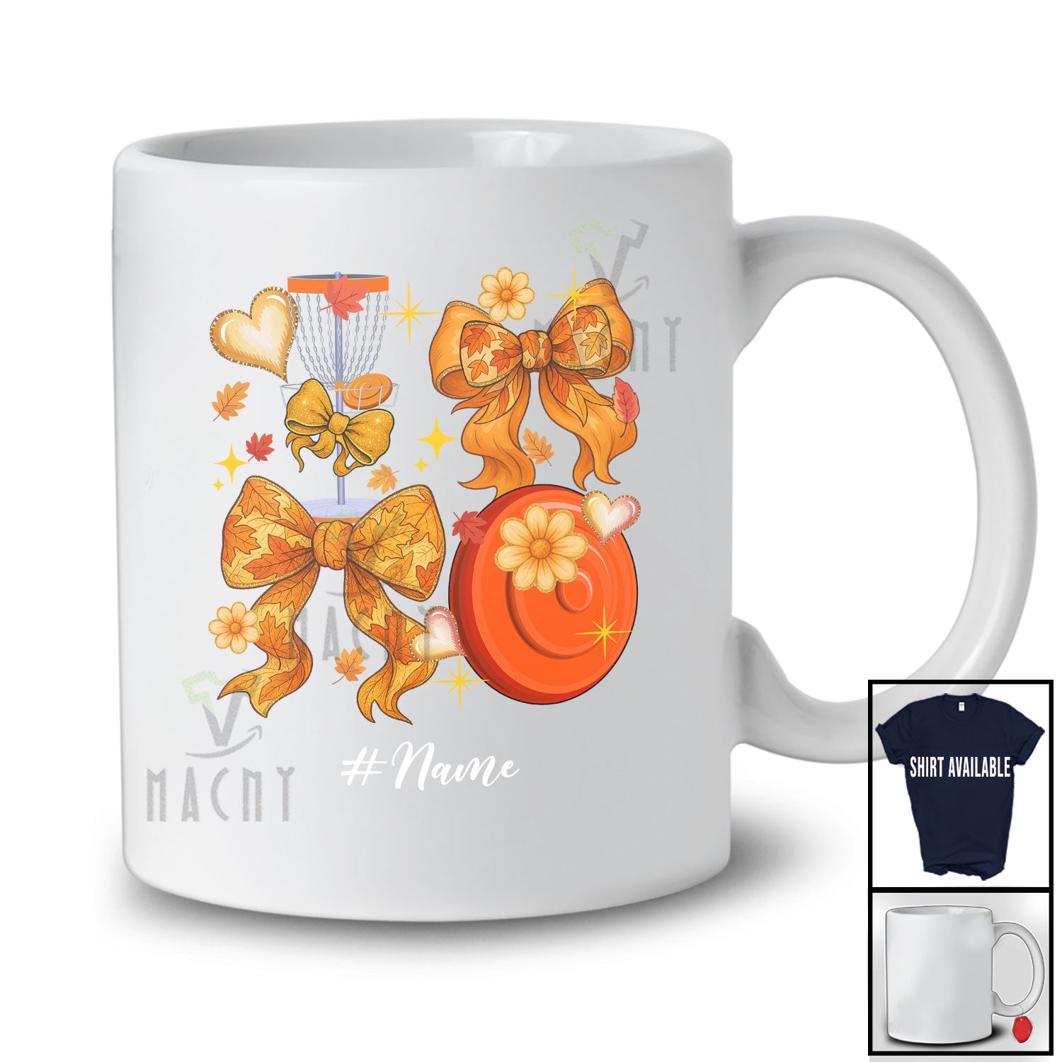 Personalized Custom Name Disc Golf Thanksgiving Coquette; Lovely Bow Tie Flowers; Sport Player T-Shirt. This cotton t-shirt is a durable staple product with a classic fit. One of the most popular items, it has a relaxed style made for everyday and casual wear.