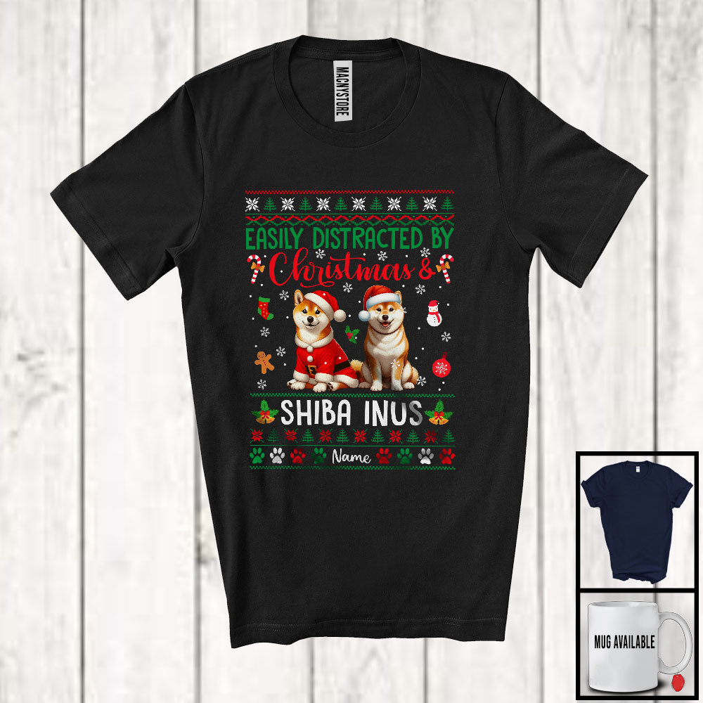 Personalized Custom Name Easily Distracted By Christmas Shiba Inus; Lovely Sweater Santa Dog T-Shirt