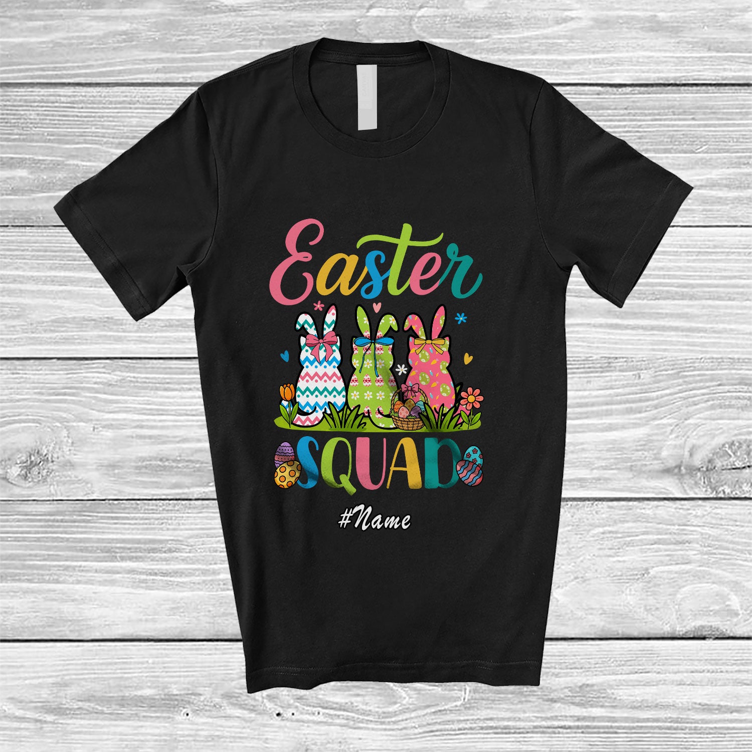 The Personalized Custom Name Easter Squad; Lovely Three Flowers Cat Bunny Eggs Hunting T-Shirt is evocative, to say the least, but that's why you're drawn to it in the first place.