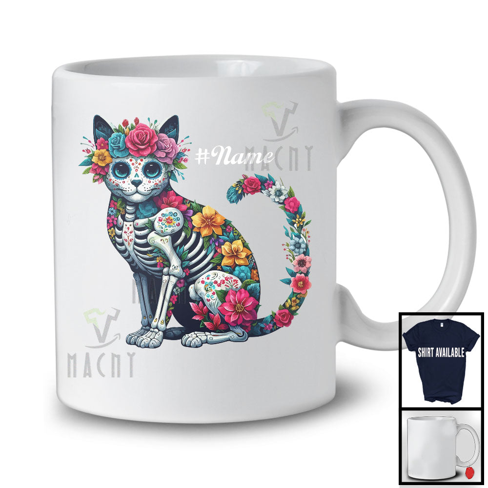 new MacnyStore - Personalized Custom Name Floral Skulls Cat; Lovely Halloween Dia De Los Muertos Mexican T-Shirt – Macnystore