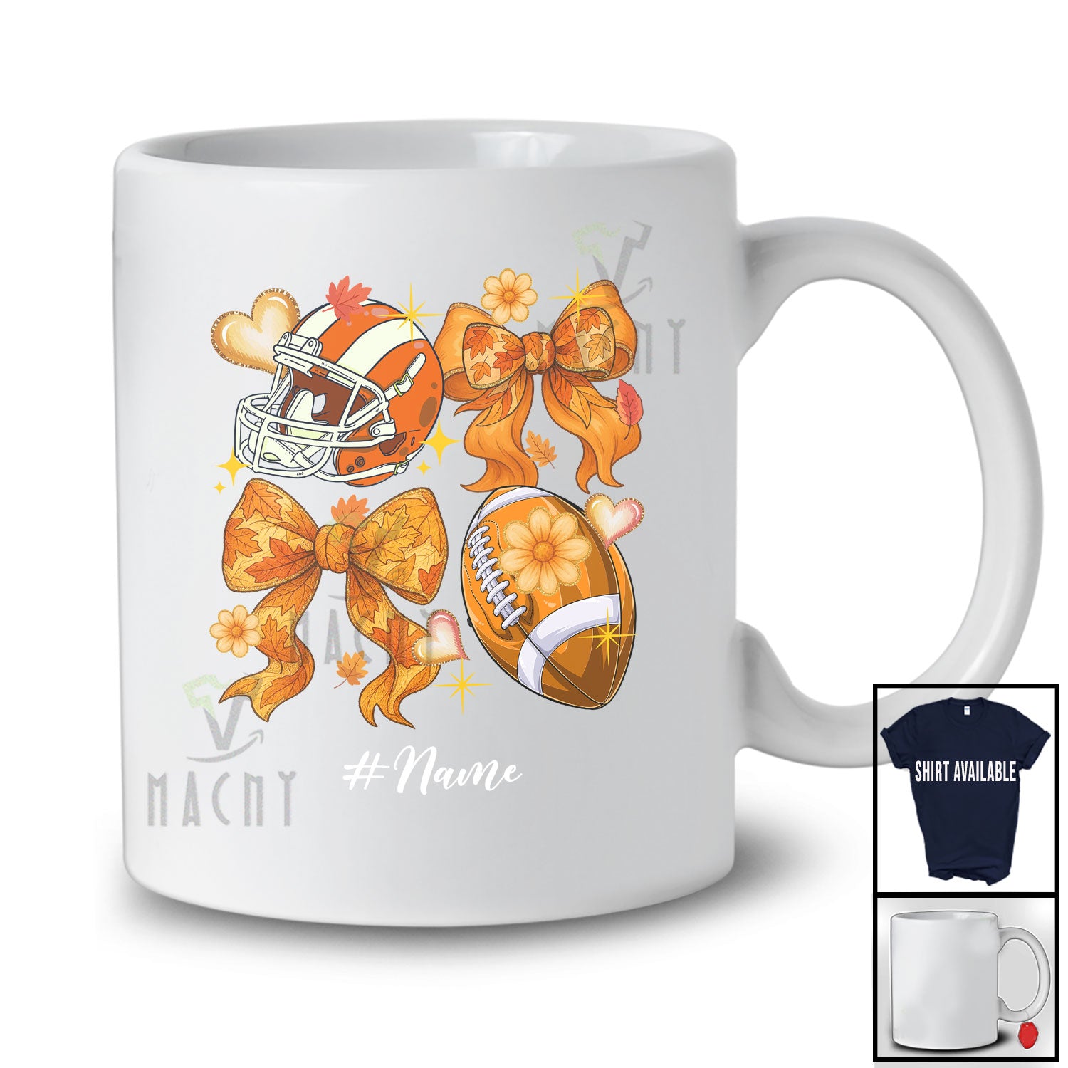 Personalized Custom Name Football Thanksgiving Coquette; Lovely Bow Tie Flowers; Sport Player T-Shirt. This cotton t-shirt is a durable staple product with a classic fit. One of the most popular items, it has a relaxed style made for everyday and casual wear.
