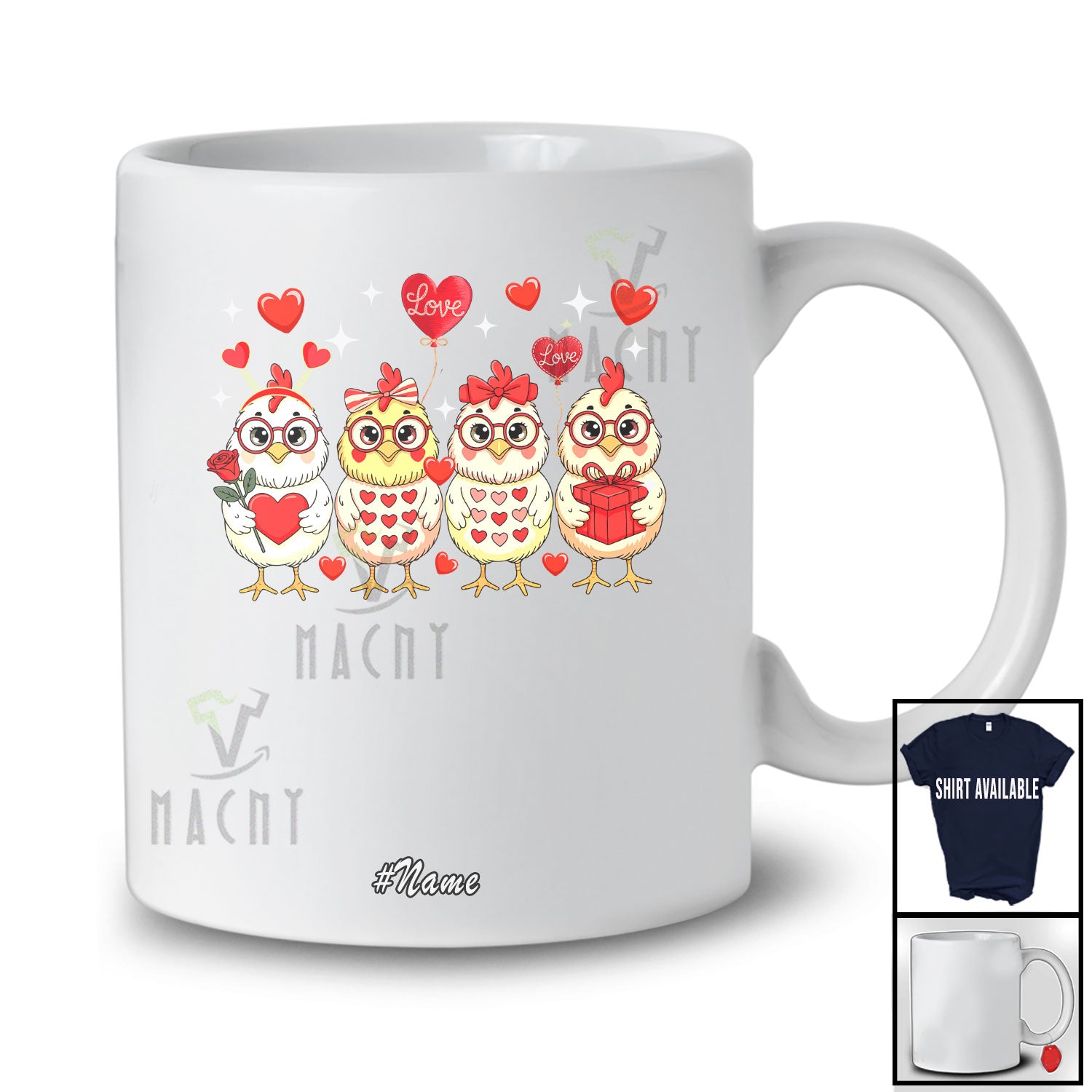 new MacnyStore - Personalized Custom Name Four Chickens With Hearts; Amusing Valentine Chicks Farmer Collection T-Shirt – Macnystore