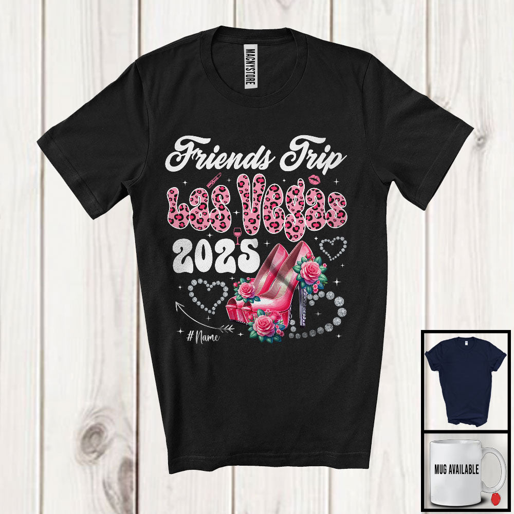 Personalized Custom Name Friends Trip Las Vegas 2025; Awesome Vacation Pink Leopard High Heels T-Shirt