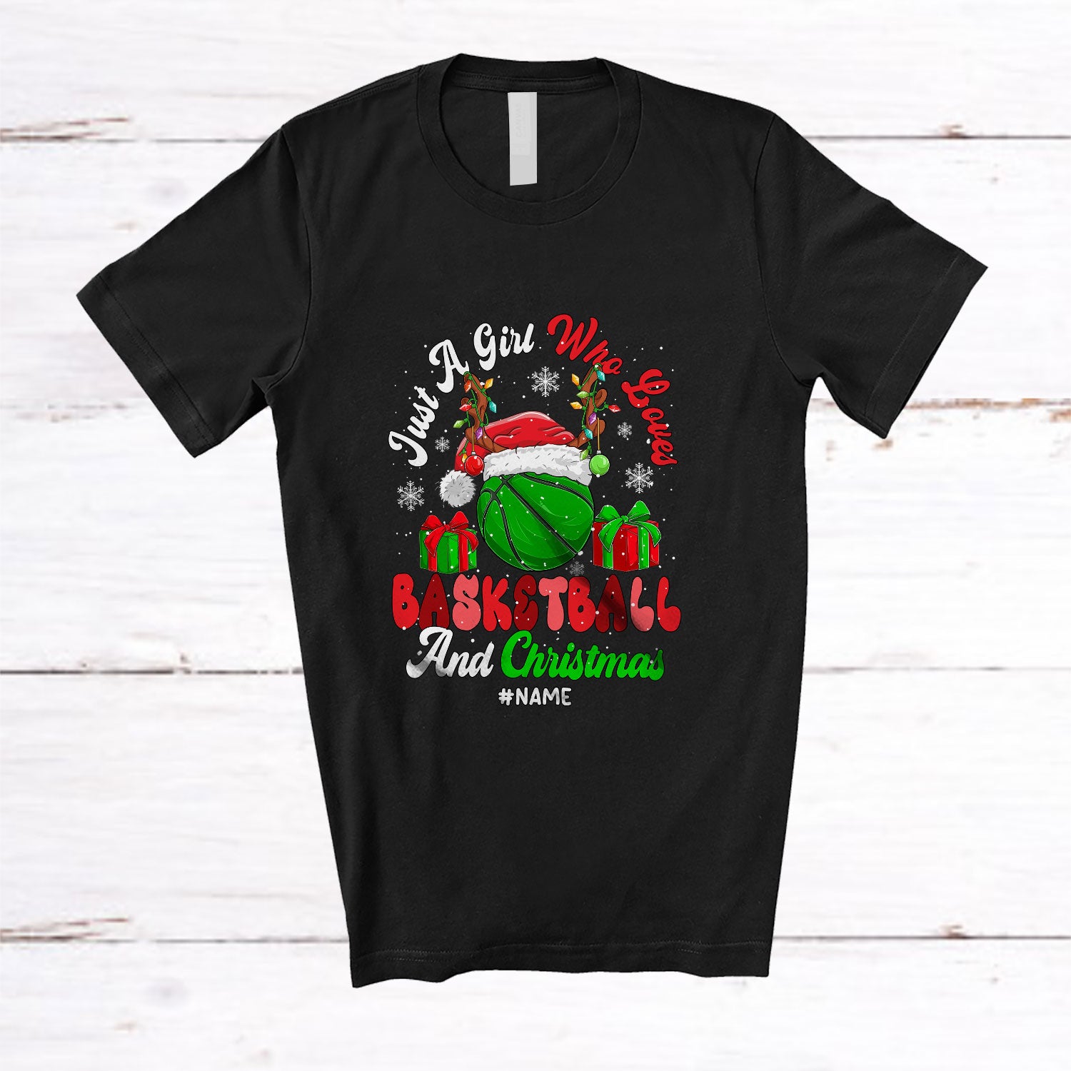 Personalized Custom Name Girl Who Loves Basketball Christmas; Joyful Sport Santa Player T-Shirt