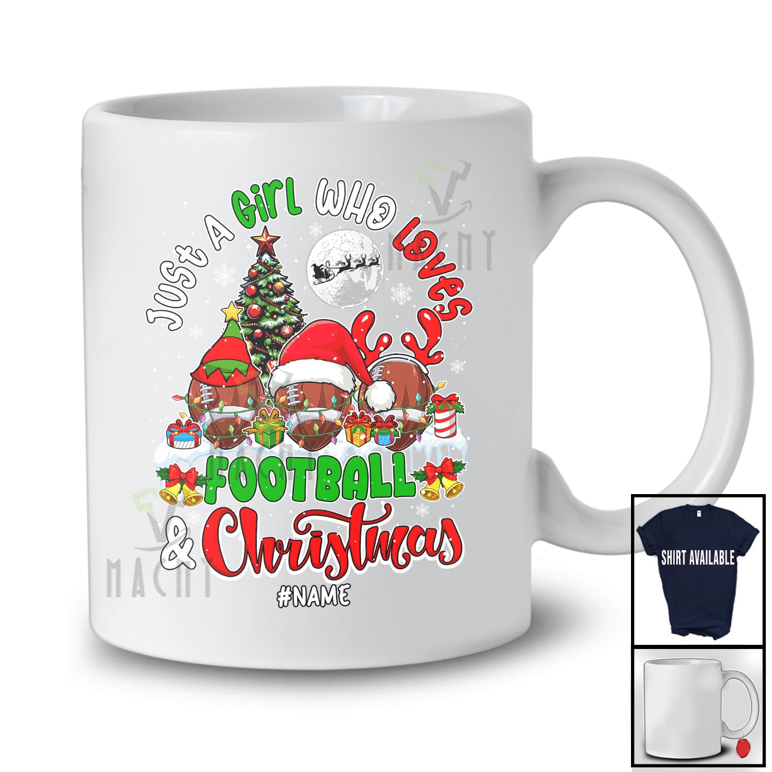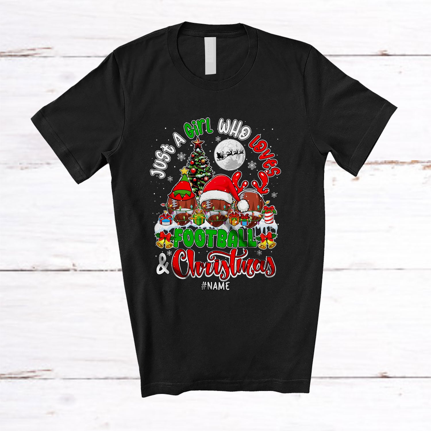 • Personalized Custom Name Girl Who Loves Football Christmas; Amusing Custom Name Sport Player T-Shirt. This cotton t-shirt is a durable staple product with a classic fit. One of the most popular items, it has a relaxed style made for everyday and casual wear.