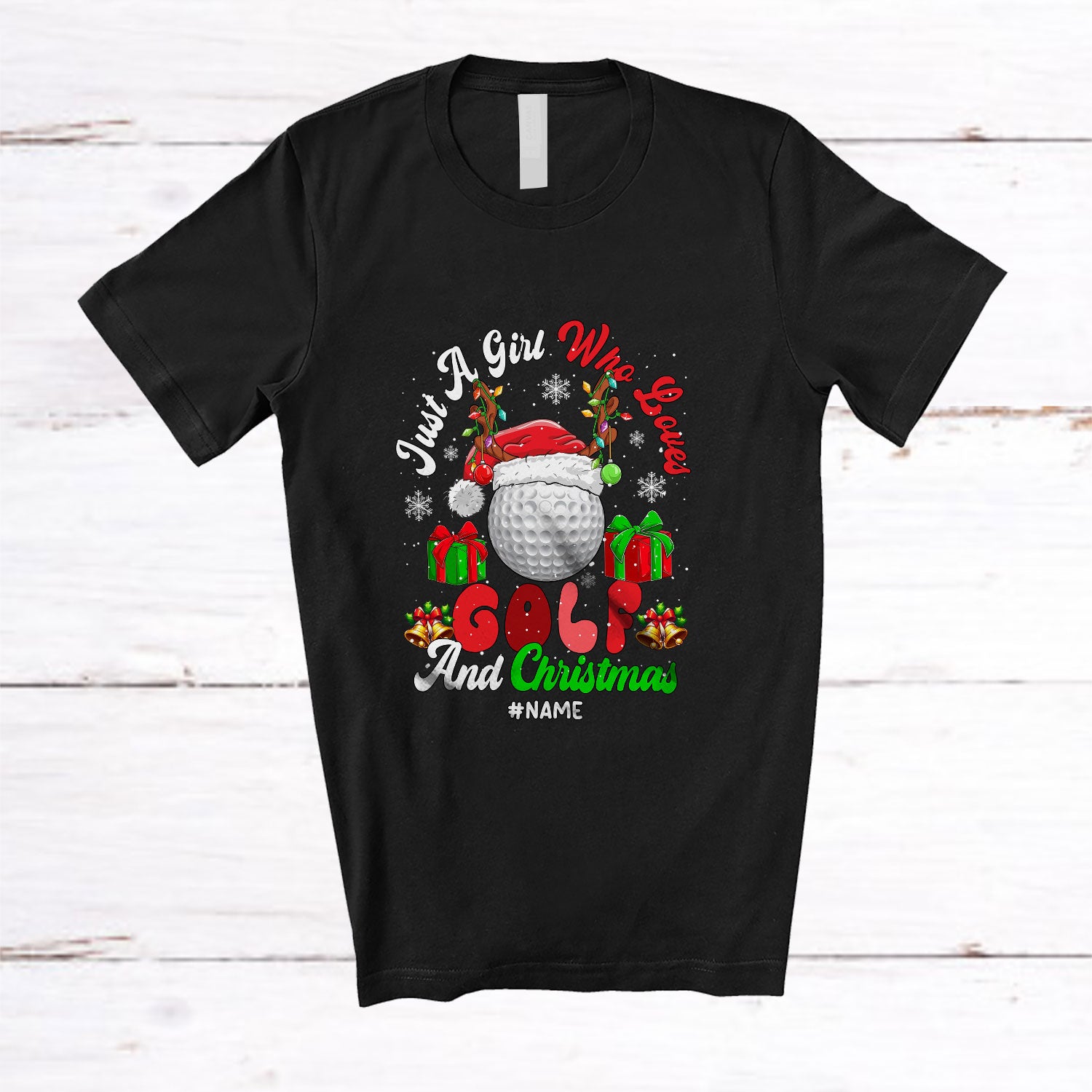 Personalized Custom Name Girl Who Loves Golf Christmas; Joyful Sport Santa Reindeer Player T-Shirt