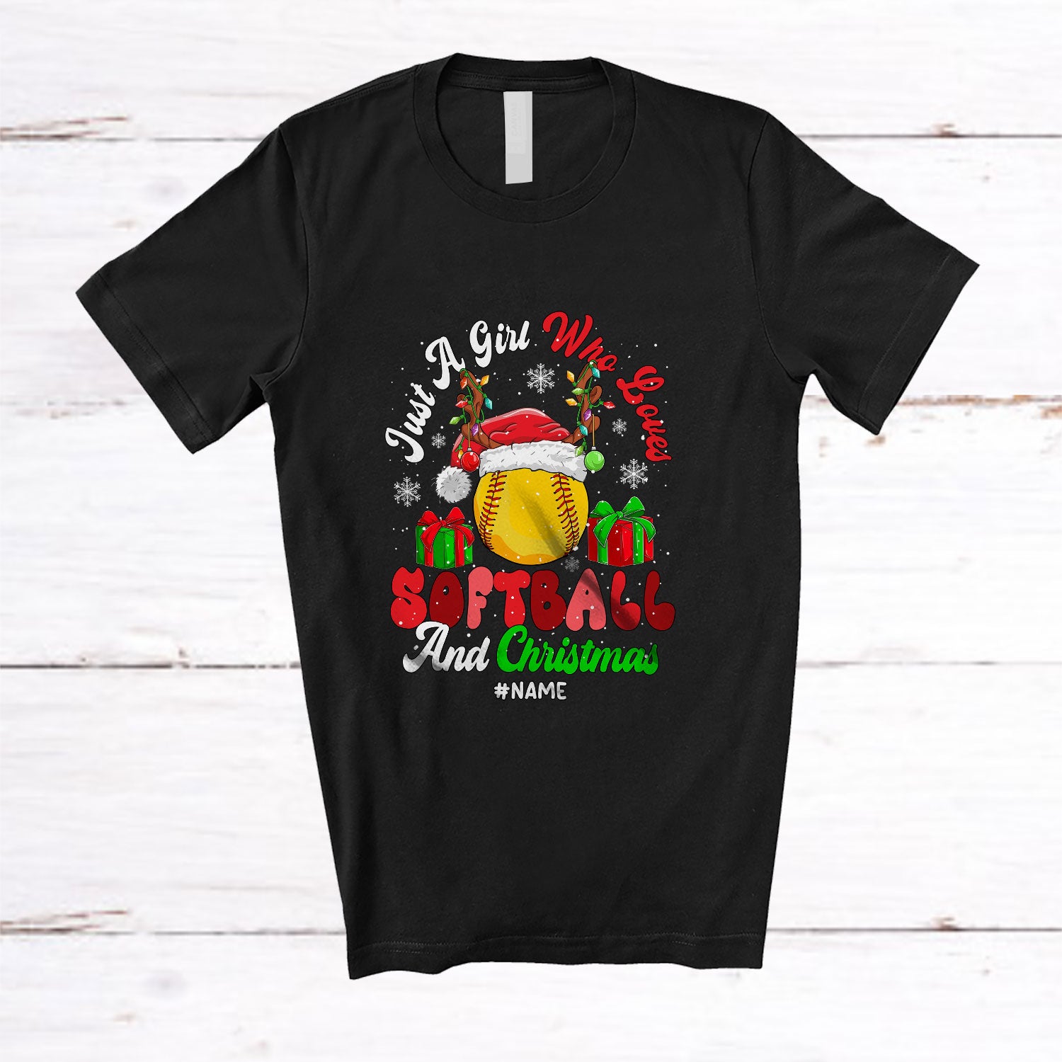 Personalized Custom Name Girl Who Loves Softball Christmas; Joyful Sport Santa Player T-Shirt