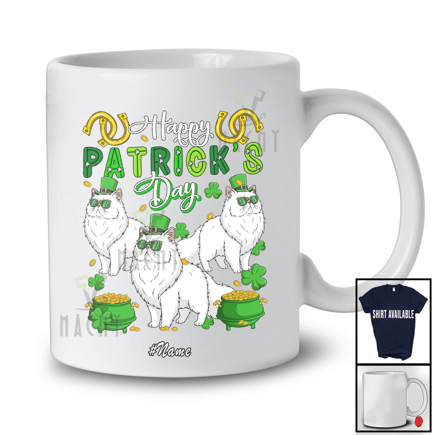 new MacnyStore - Personalized Custom Name Happy St. Patrick's Day; Amusing Three Leprechaun Persian Cat Owner T-Shirt – Macnystore