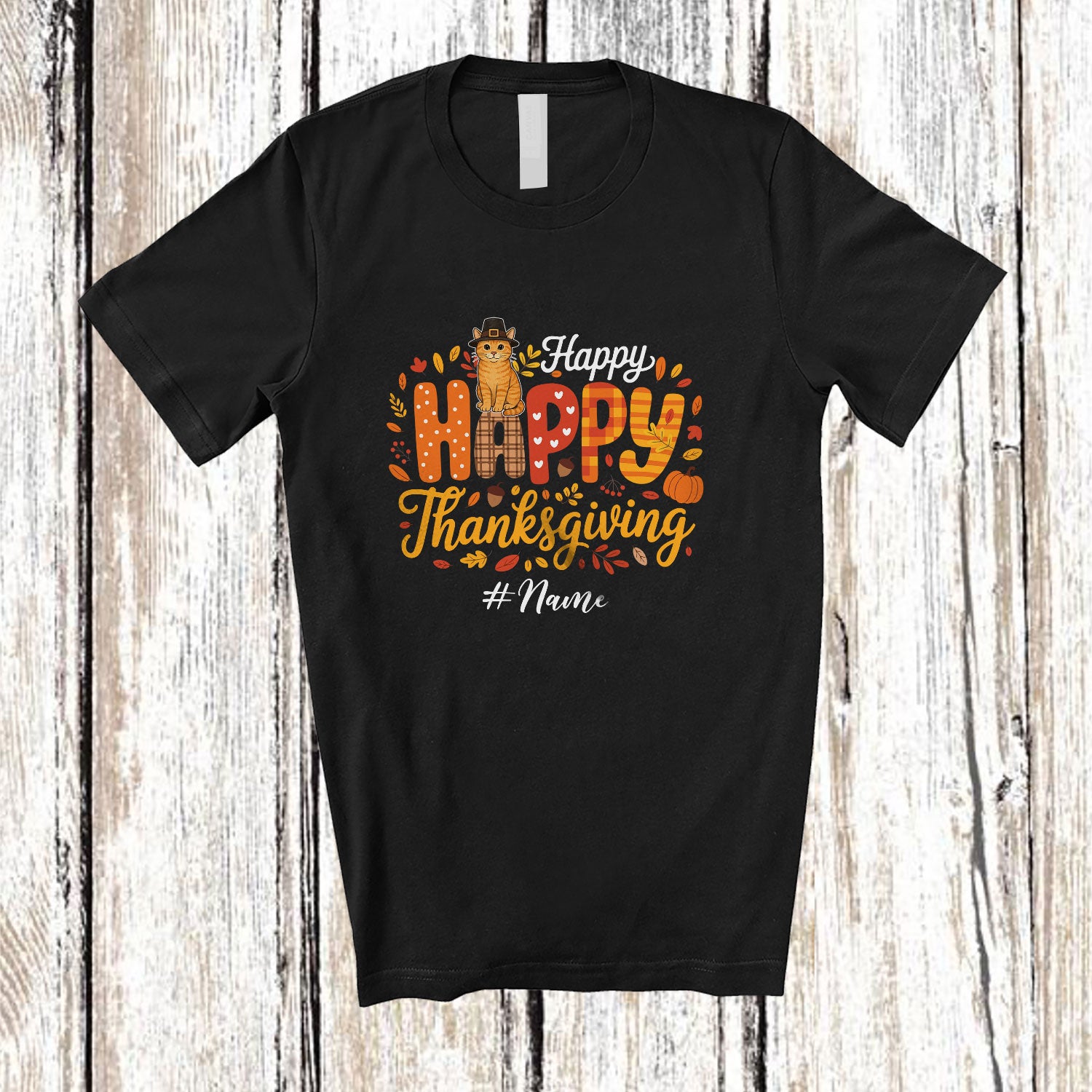 Personalized Custom Name Happy Thanksgiving; Lovely Fall Pilgrim Cat; Family T-Shirt