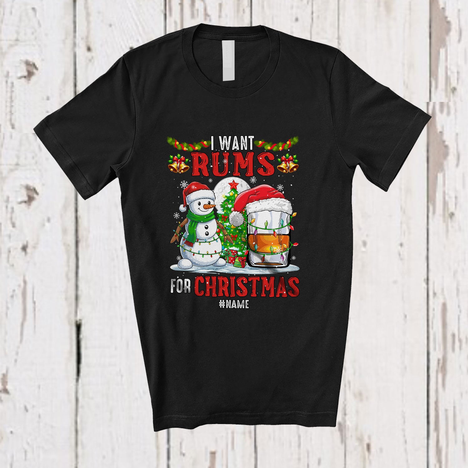 Personalized Custom Name I Want Rums For Christmas; Cheerful Santa Drinking Drunker T-Shirt