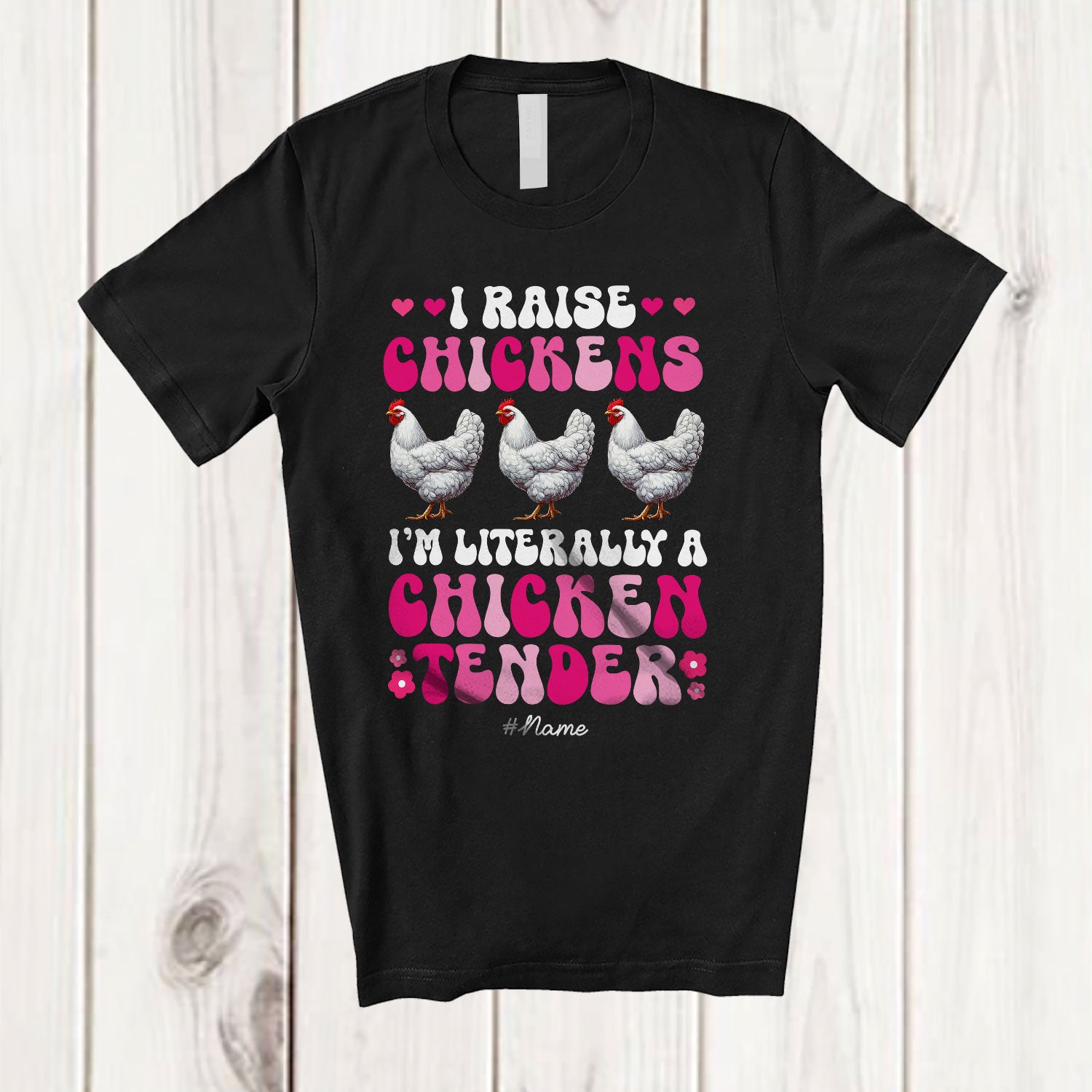 Personalized Custom Name I'm Literally A Chicken Tender; Humorous Groovy Chicken Farmer T-Shirt