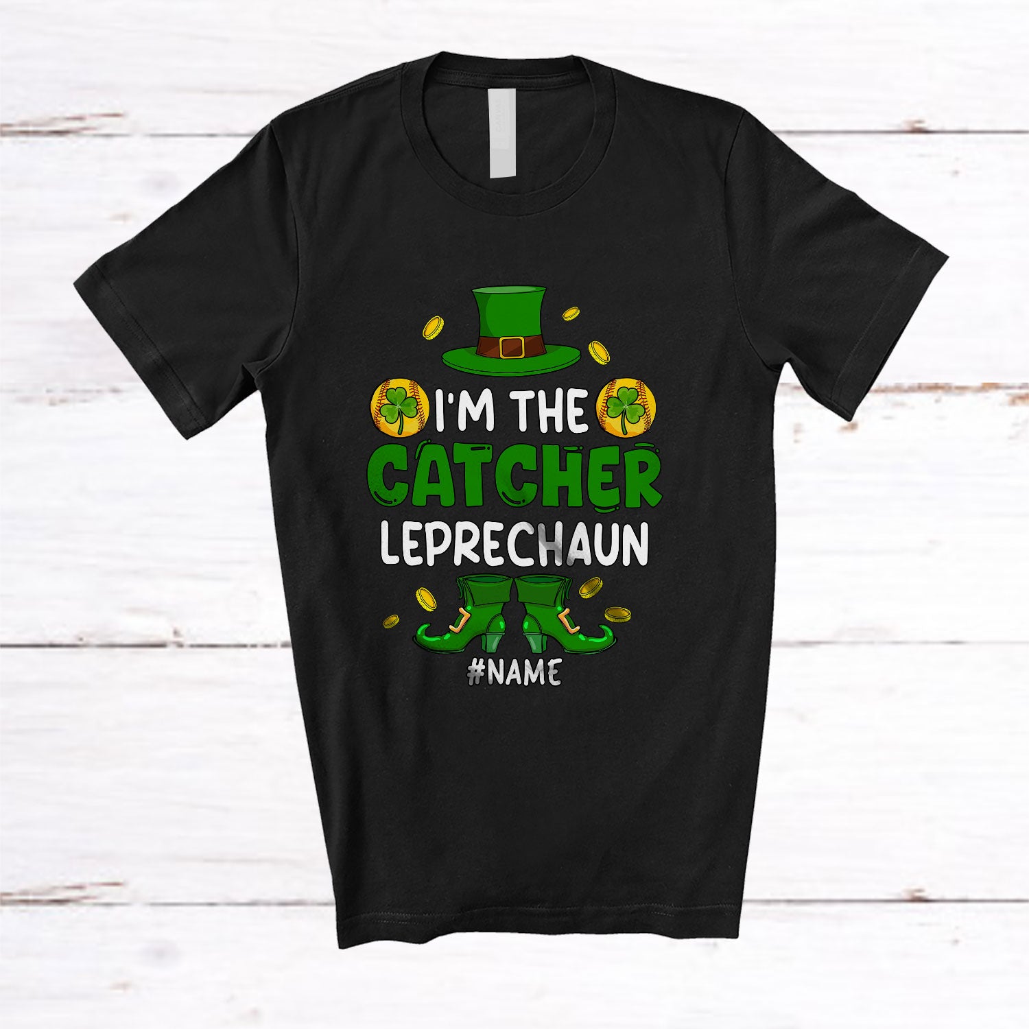 Personalized Custom Name I'm The Catcher Leprechaun; Lovely St. Patrick's Day Softball Shamrocks T-Shirt