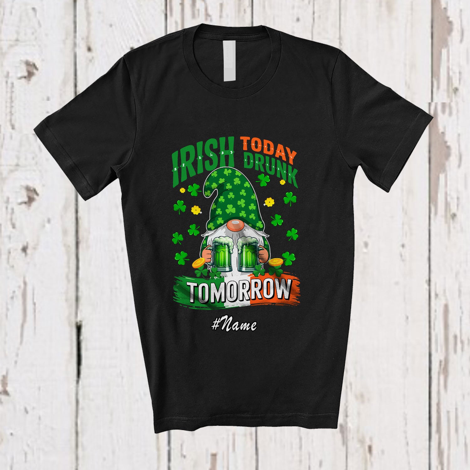 Personalized Custom Name Irish Today Drunk Tomorrow; Joyful St. Patrick's Day Gnome Drinking T-Shirt