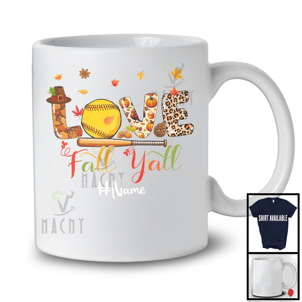 Personalized Custom Name Love Fall Y'All; Amazing Thanksgiving Autumn Softball Player; Sport T-Shirt
