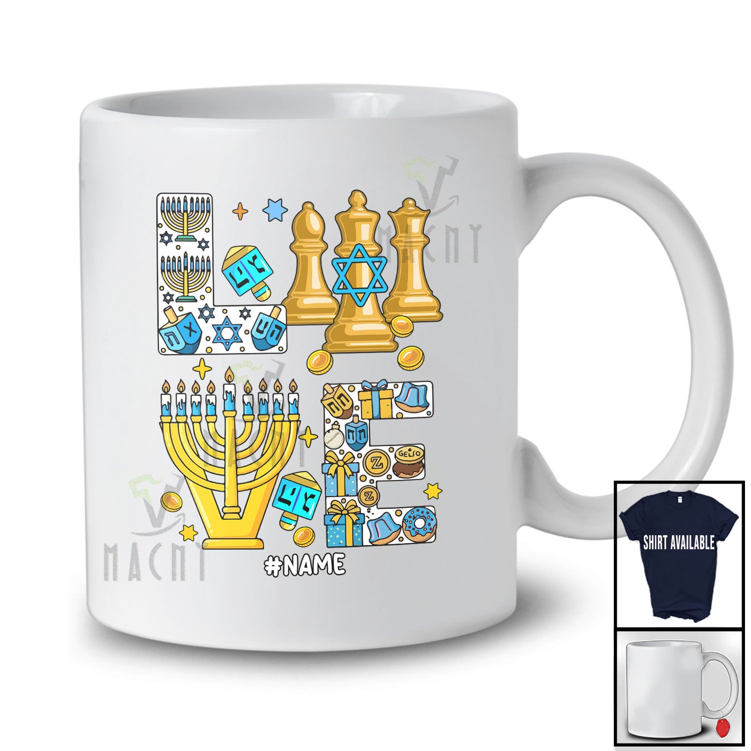 Personalized Custom Name LOVE; Lovely Hanukkah Menorah Chess Player; Sport Playing Team T-Shirt. This cotton t-shirt is a durable staple product with a classic fit. One of the most popular items, it has a relaxed style made for everyday and casual wear.