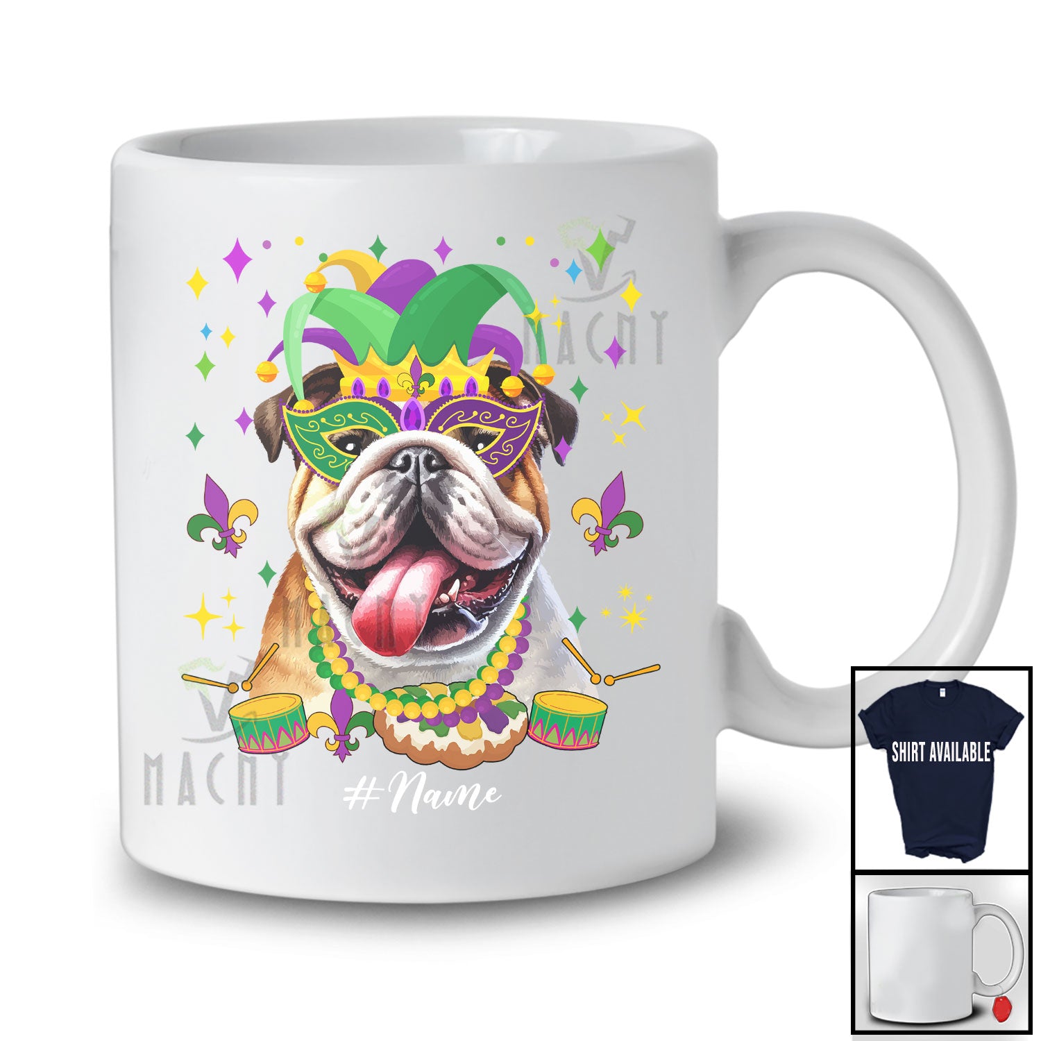Personalized Custom Name Mardi Gras Mask Bulldog Face; Joyful Parades Jester Hat Beads T-Shirt