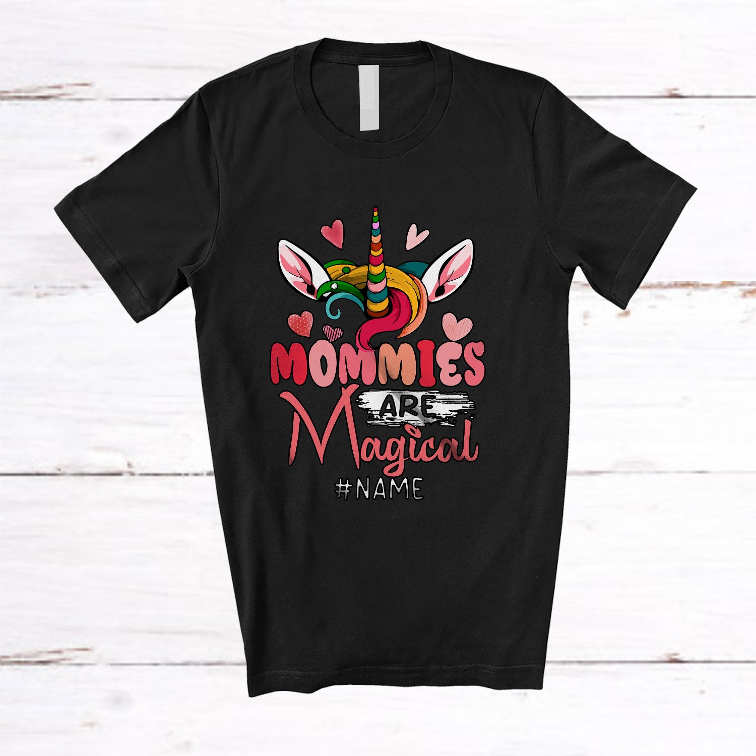 Personalized Custom Name Mommies are Magical; Fantastic Mother's Day Unicorn Face; Family T-Shirt. This cotton t-shirt is a durable staple product with a classic fit. One of the most popular items, it has a relaxed style made for everyday and casual wear.