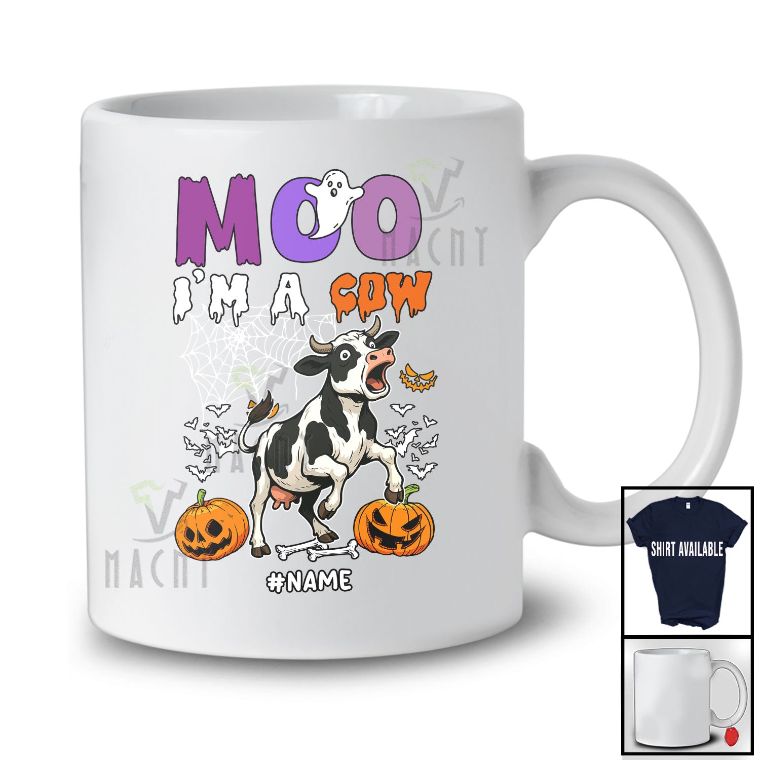 Personalized Custom Name Moo I'm A Cow; Scary Halloween Cow Boo Ghost Pumpkin; Farmer T-Shirt. This cotton t-shirt is a durable staple product with a classic fit. One of the most popular items, it has a relaxed style made for everyday and casual wear.