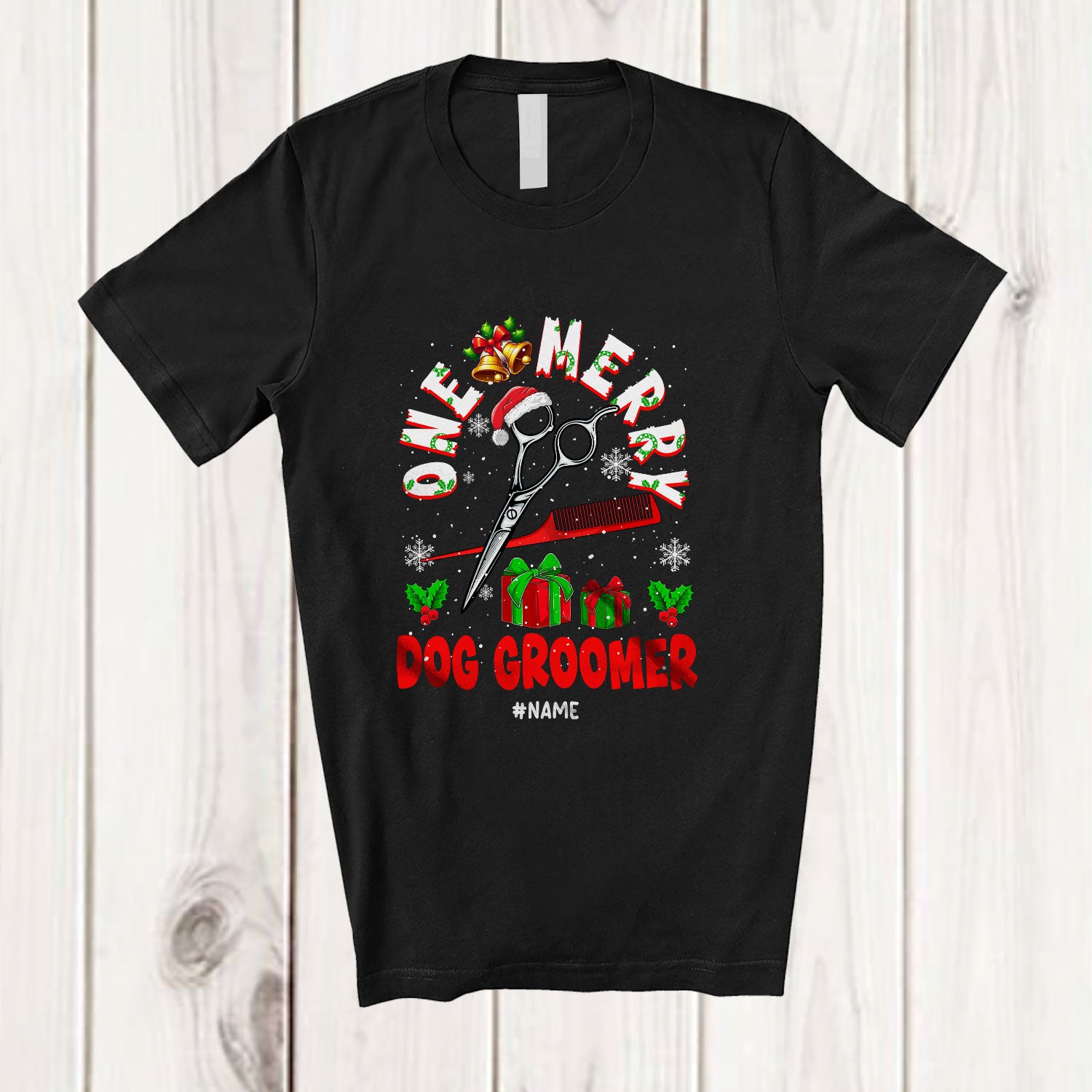 Personalized Custom Name One Merry Dog Groomer; Fantastic Christmas Santa Jobs Careers T-Shirt
