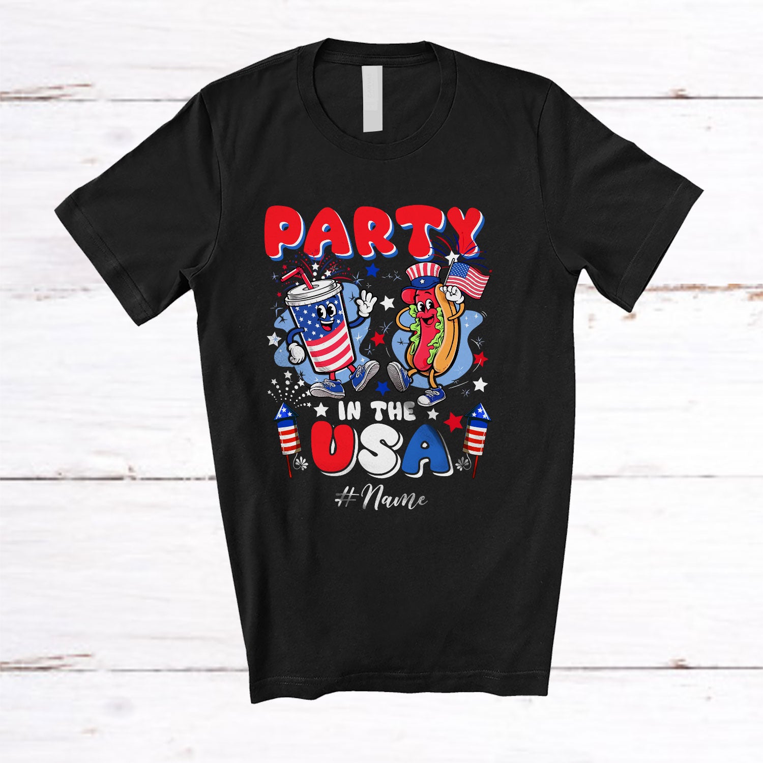 Personalized Custom Name Party In The USA; Amusing 4th Of July Hotdog Soft Drink; Patriotic T-Shirt