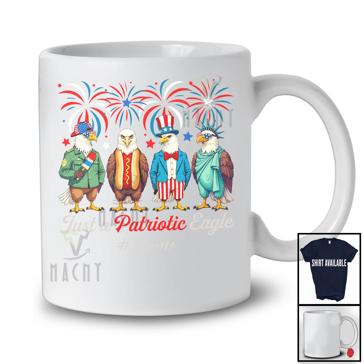 Personalized Custom Name Patriotic Eagle; Lovely 4th Of July Liberty Hot Dog Sausage; Patriotic T-Shirt. This cotton t-shirt is a durable staple product with a classic fit. One of the most popular items, it has a relaxed style made for everyday and casual wear.