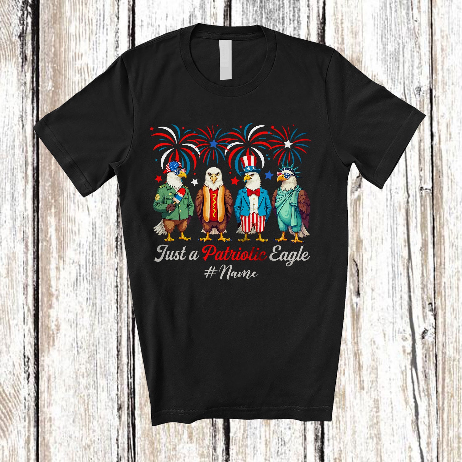 Personalized Custom Name Patriotic Eagle; Lovely 4th Of July Liberty Hot Dog Sausage; Patriotic T-Shirt