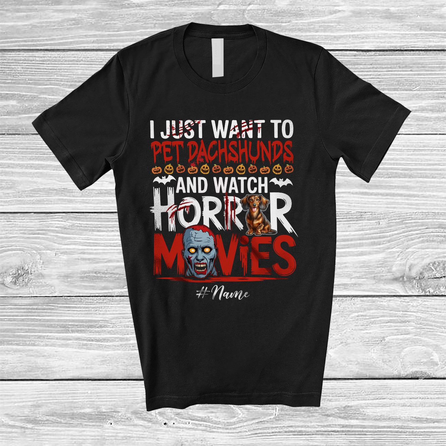 Personalized Custom Name Pet Dachshunds And Watch Horror Movies; Creepy Halloween Zombie T-Shirt