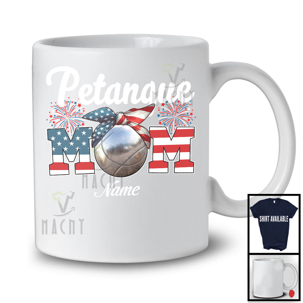 Personalized Custom Name Petanque Mom, Proud 4th Of July USA Flag Headband, Patriotic Family T-Shirt. This cotton t-shirt is a durable staple product with a classic fit. One of the most popular items, it has a relaxed style made for everyday and casual wear.