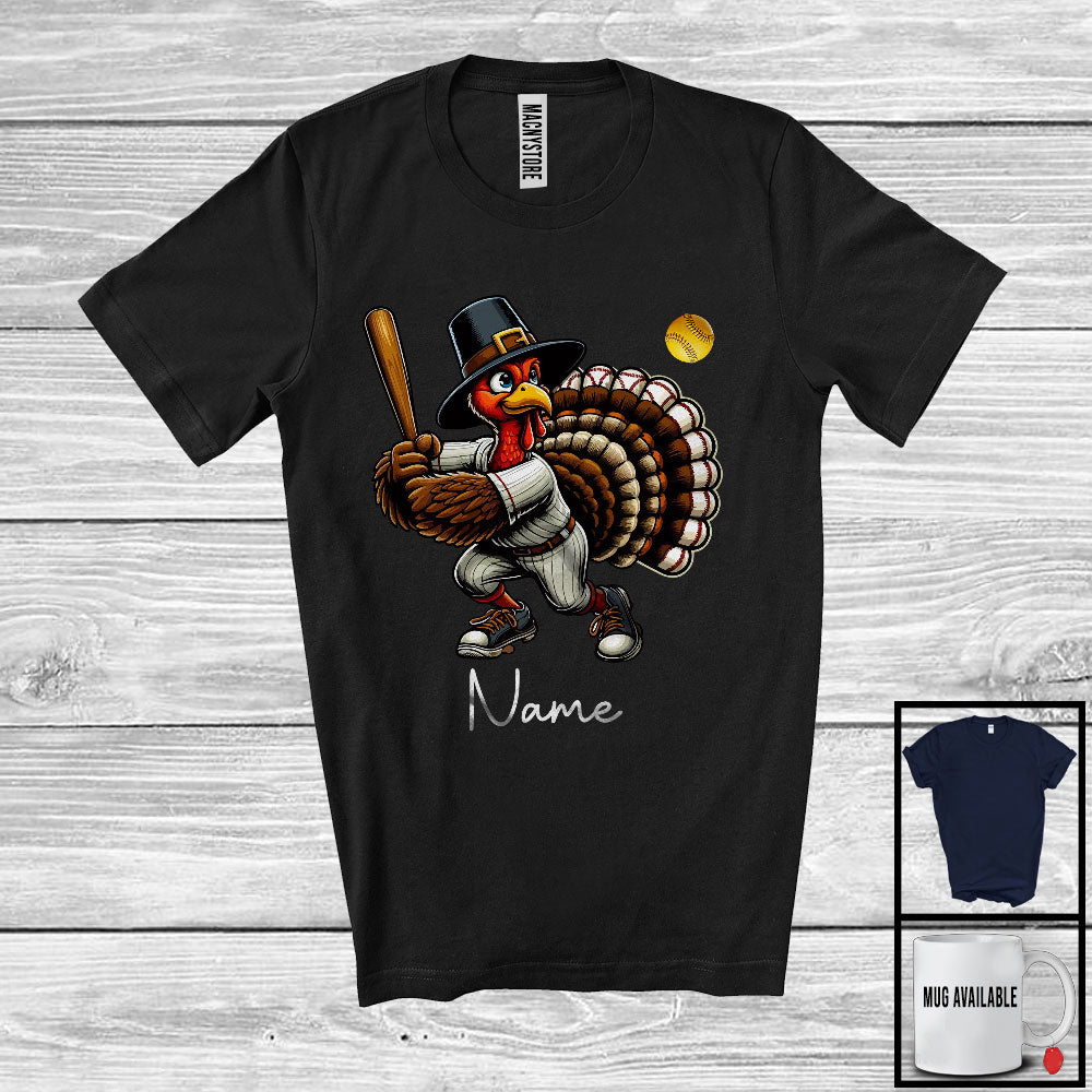 Personalized Custom Name Pilgrim Turkey Playing Softball, Lovely Thanksgiving Sport Player Team T-Shirt