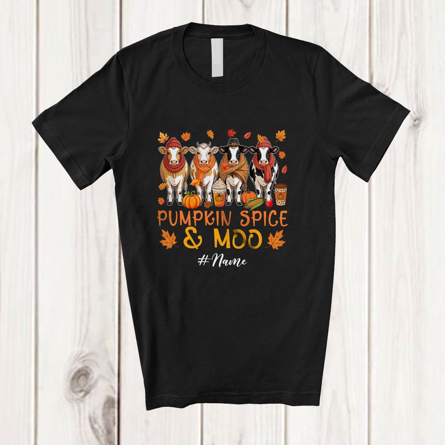 Personalized Custom Name Pumpkin Spice & Moo; Lovely Thanksgiving Fall Cow; Farm Farmer T-Shirt