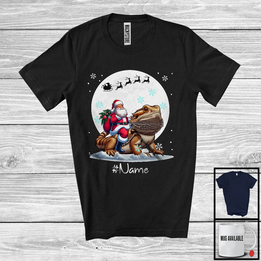 Personalized Custom Name Santa Riding Bearded Dragon, Merry Christmas Moon Snow, X-mas T-Shirt