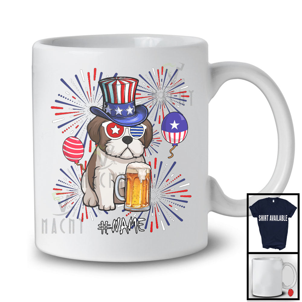 Personalized Custom Name Shih Tzu Drinking Beer, Lovely 4th Of July Fireworks, Patriotic T-Shirt