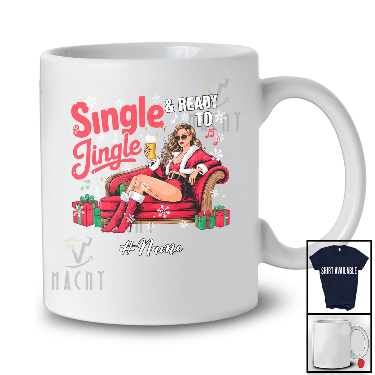 new MacnyStore - Personalized Custom Name Single Ready To Jingle; Cheerful Christmas Women Santa Drinking Beer T-Shirt – Macnystore