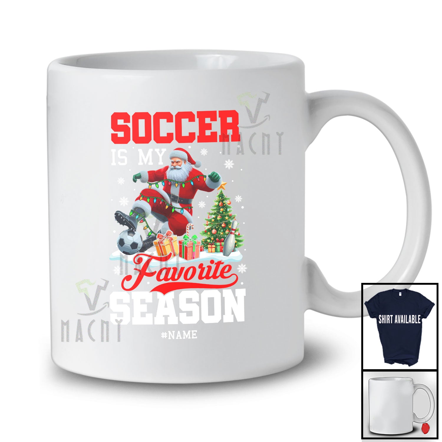 • Personalized Custom Name Soccer Is My Favorite Season; Joyful Christmas Santa Sport Player T-Shirt. This cotton t-shirt is a durable staple product with a classic fit. One of the most popular items, it has a relaxed style made for everyday and casual wear.