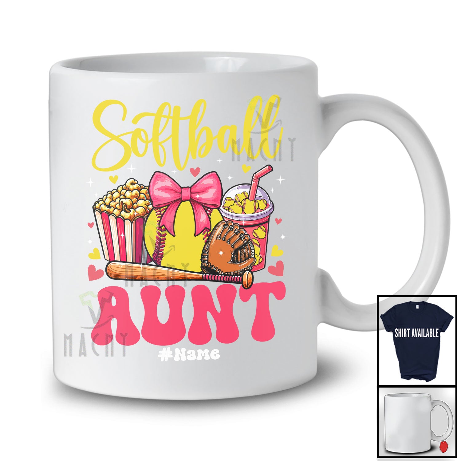 new MacnyStore - Personalized Custom Name Softball Aunt; Adorable Mother's Day Bow Tie Sport Player; Family T-Shirt – Macnystore