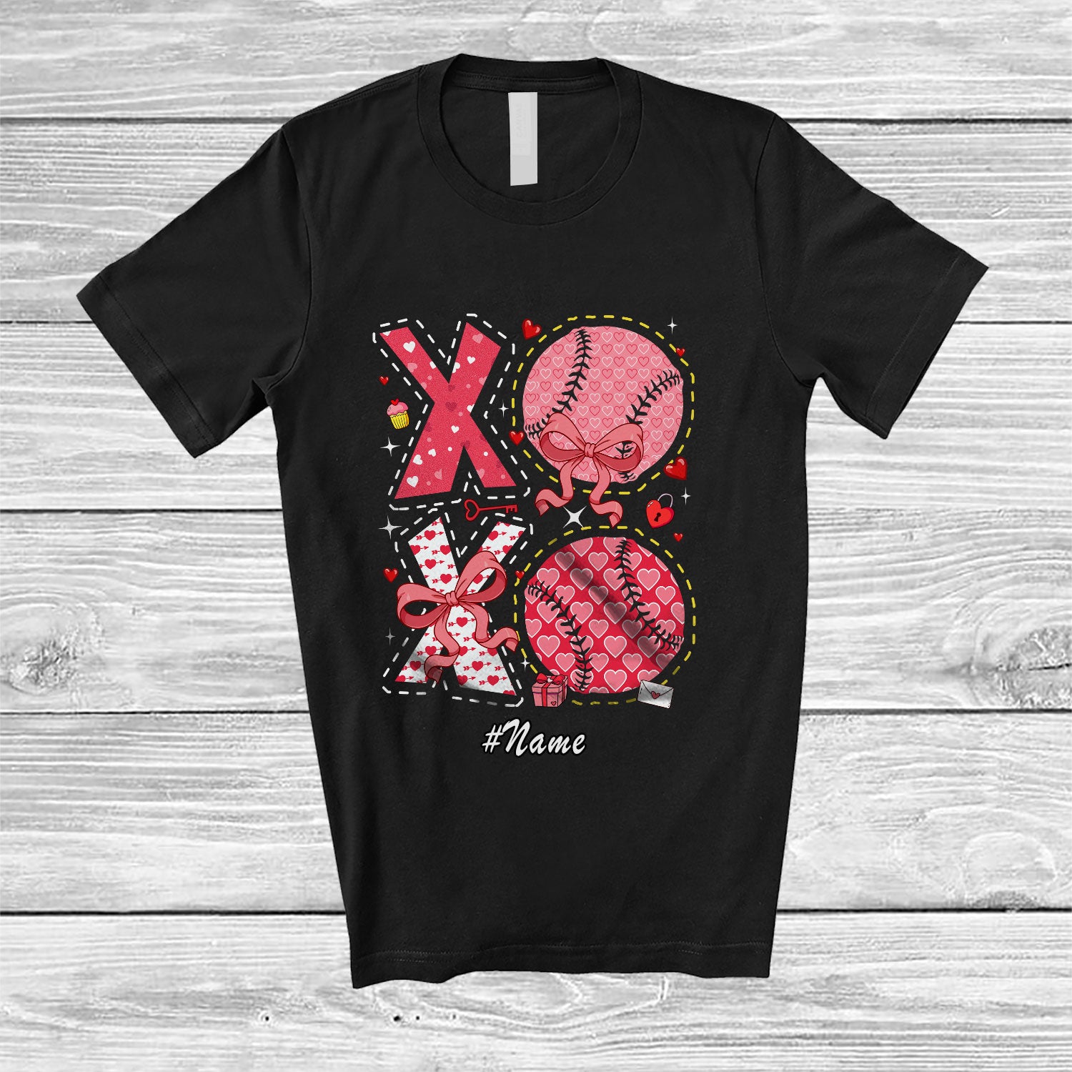 Personalized Custom Name Softball With Pink Hearts Bow Tie; Lovely Valentine Sport Player Lover T-Shirt. This cotton t-shirt is a durable staple product with a classic fit. One of the most popular items, it has a relaxed style made for everyday and casual wear.