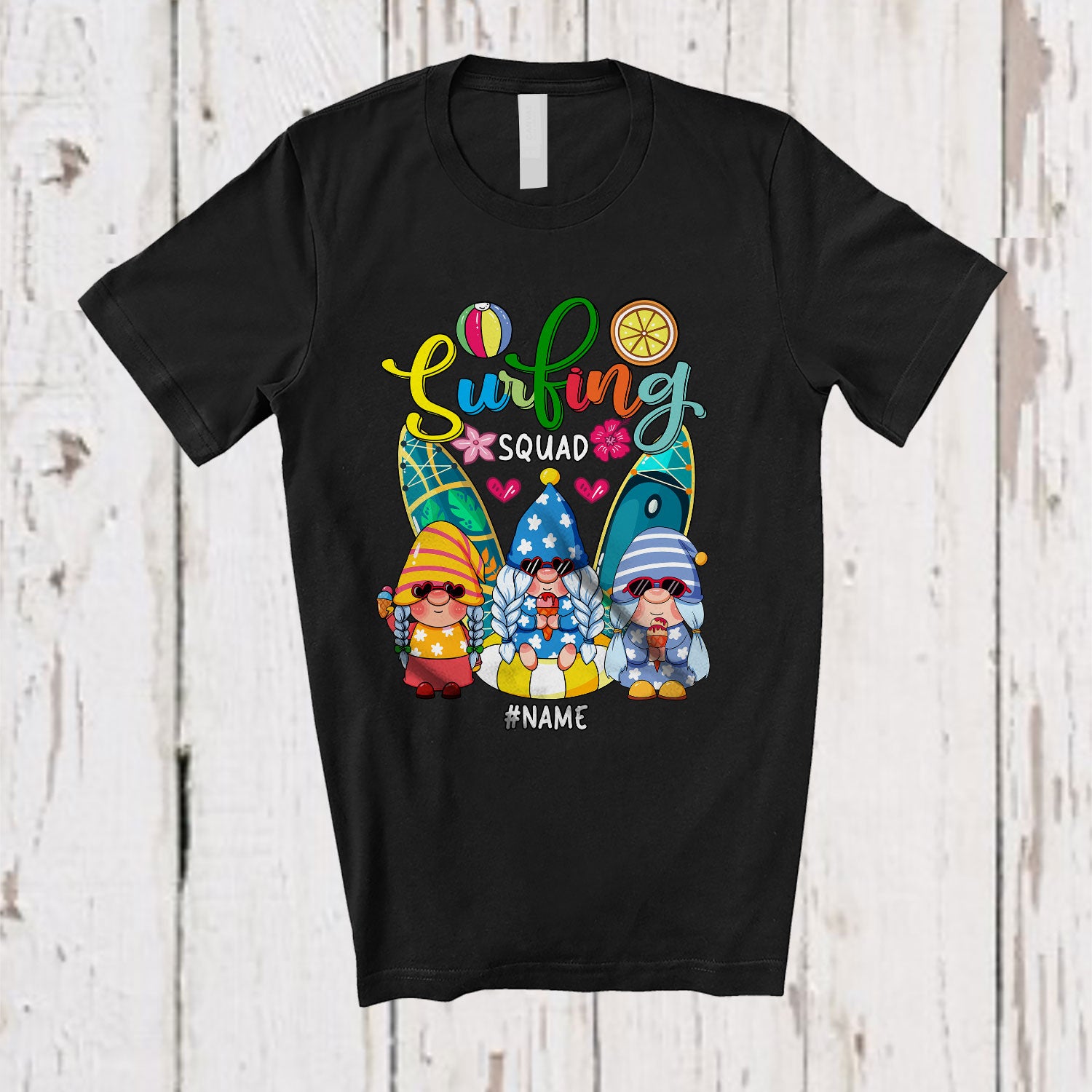 This Personalized Custom Name Surfing Squad; Lovely Summer Vacation Christmas In July 3 Gnomes T-Shirt is great idea gift for your family, friends in this birthday, christmas, mother's day, father's day, patrick's day or any holiday.