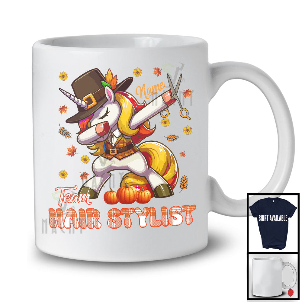 • Personalized Custom Name Team Hair Stylist, Joyful Thanksgiving Dabbing Unicorn, Plaid Careers T-Shirt. This cotton t-shirt is a durable staple product with a classic fit. One of the most popular items, it has a relaxed style made for everyday and casual wear.