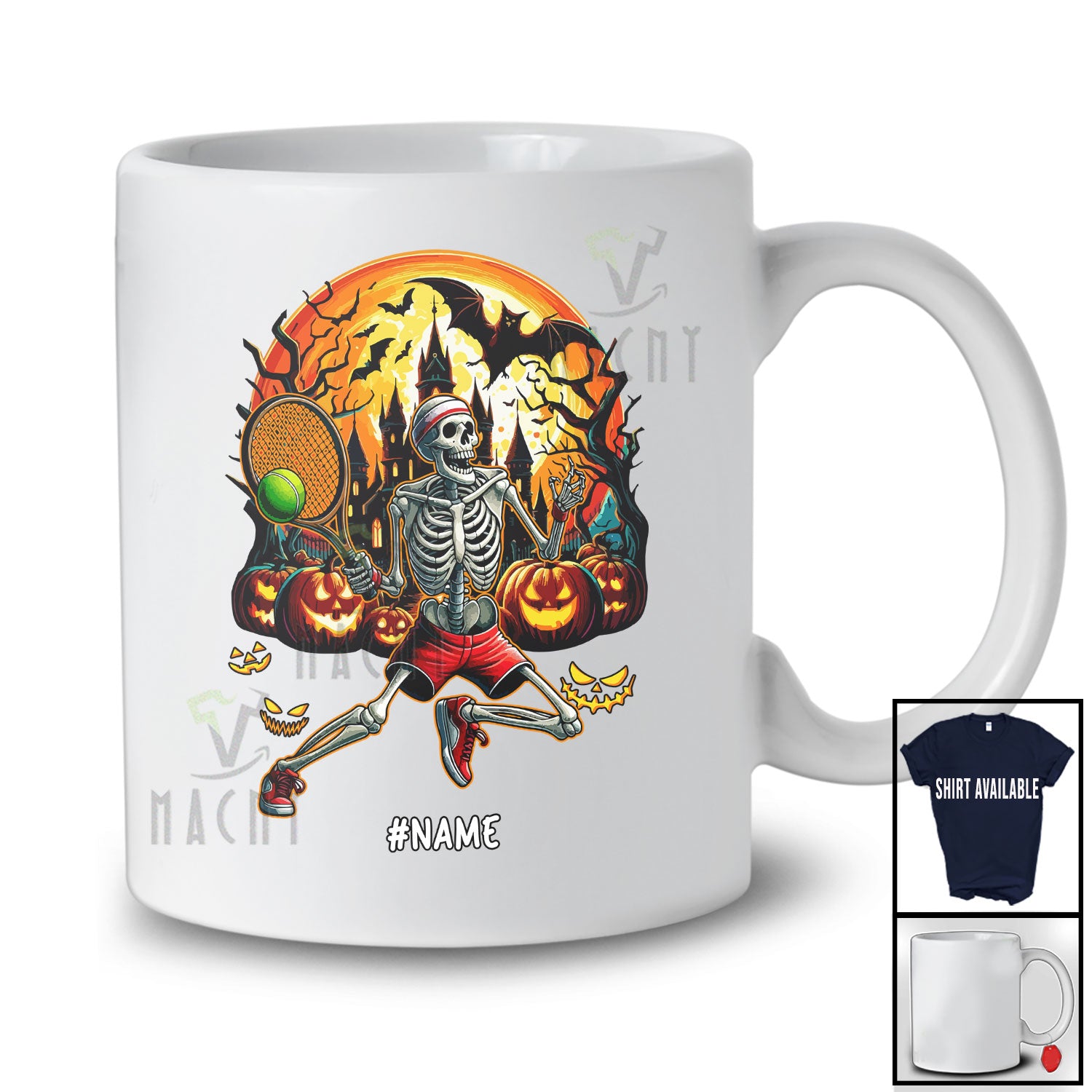 Personalized Custom Name Tennis Skeleton Player; Horror Halloween Moon Sport Playing Team T-Shirt