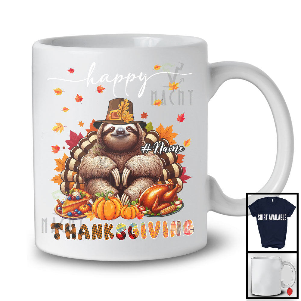 Personalized Custom Name Thanksgiving; Adorable Sloth Plaid Turkey Pumpkin; Wild Animal T-Shirt