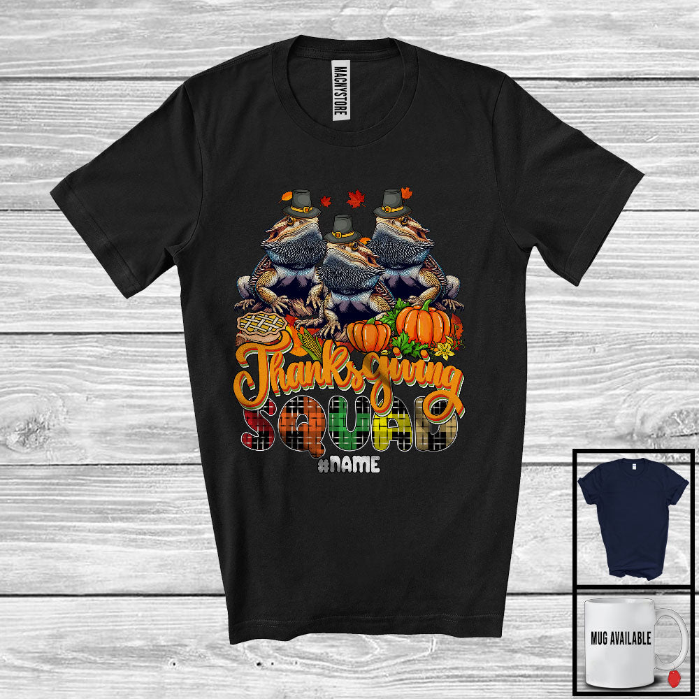 Personalized Custom Name Thanksgiving Squad; Happy Plaid Three Pilgrim Bearded Dragons; Animal T-Shirt