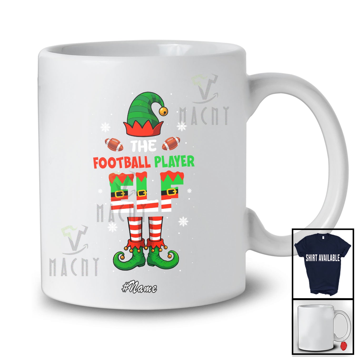 Personalized Custom Name The Football Player Elf; Awesome Christmas Sport Playing Team T-Shirt. This cotton t-shirt is a durable staple product with a classic fit. One of the most popular items, it has a relaxed style made for everyday and casual wear.