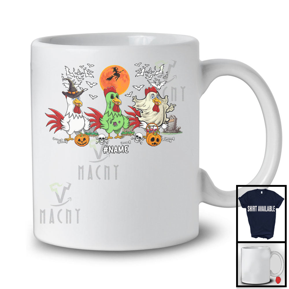 Personalized Custom Name Three Costume Chicken; Creepy Halloween Witch Zombie Boo; Animal T-Shirt