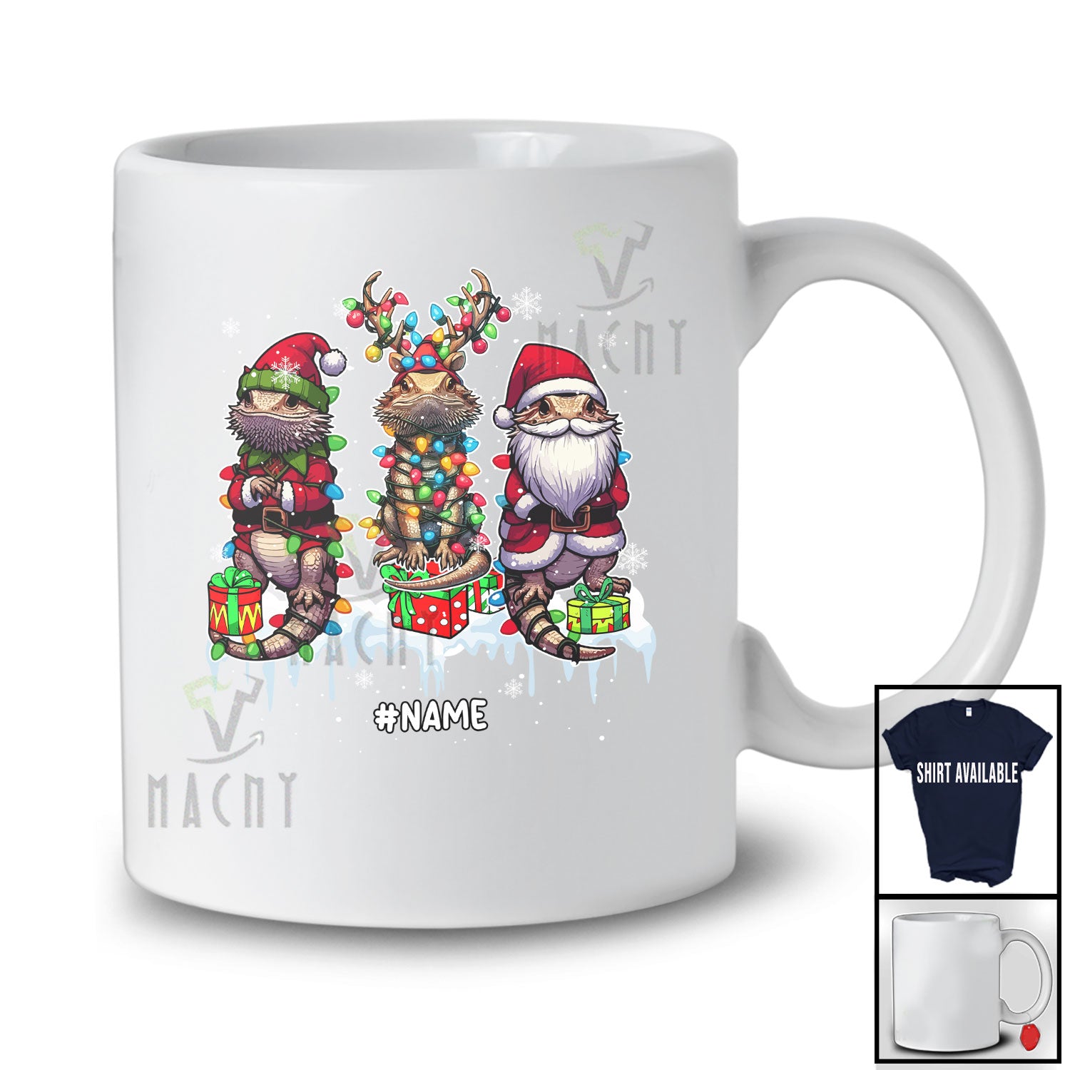 This Personalized Custom Name Three Elf Reindeer Bearded Dragons; Lovely Christmas Lights Animal T-Shirt is great idea gift for your family, friends in this birthday, christmas, mother's day, father's day, patrick's day or any holiday.